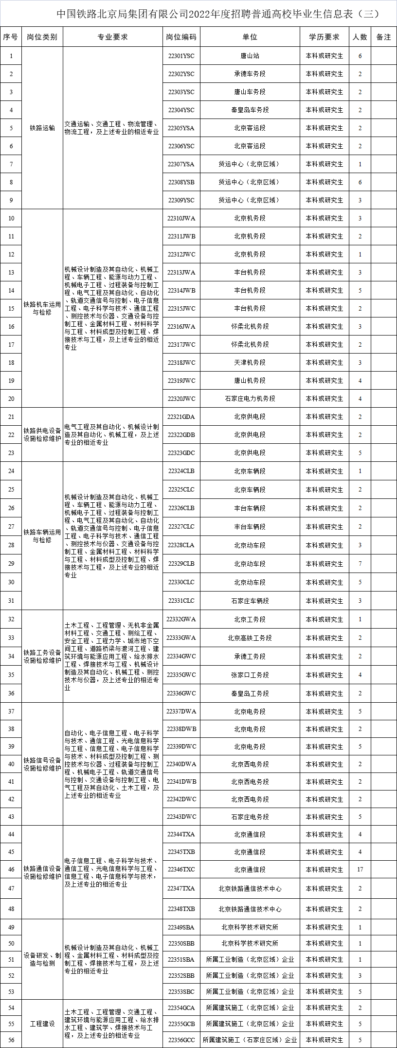 中国铁路北京局集团有限公司2022年度招聘普通高校毕业生公告 中国铁路北京局集团有限公司根据企业发…