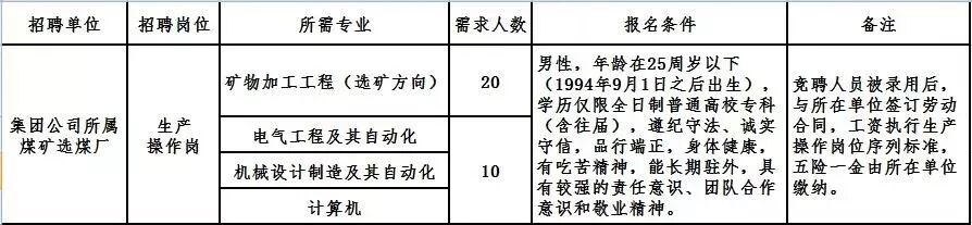 根据企业生产经营需要,太原煤气化集团公司按照“按需招聘,择优录用”的市场化原则,决定为所属煤矿选煤厂面向社会公开招聘生产操作工30名。现…