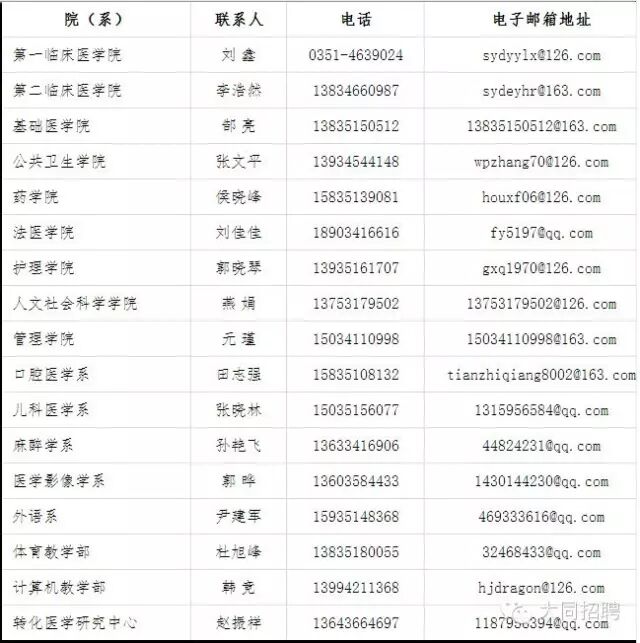 1、应聘者可通过电子邮件向我校报名。报名时,邮件主题及《山西医科大学应聘人员报名表》均命名为:(博)姓名+毕业学校+所学专业,例:(博)张三+清华大学+免疫学邮件同时发送至学校人事处招聘邮箱sxmuhr@126.com及相关院系招聘联系邮箱(见院系联系方法)。